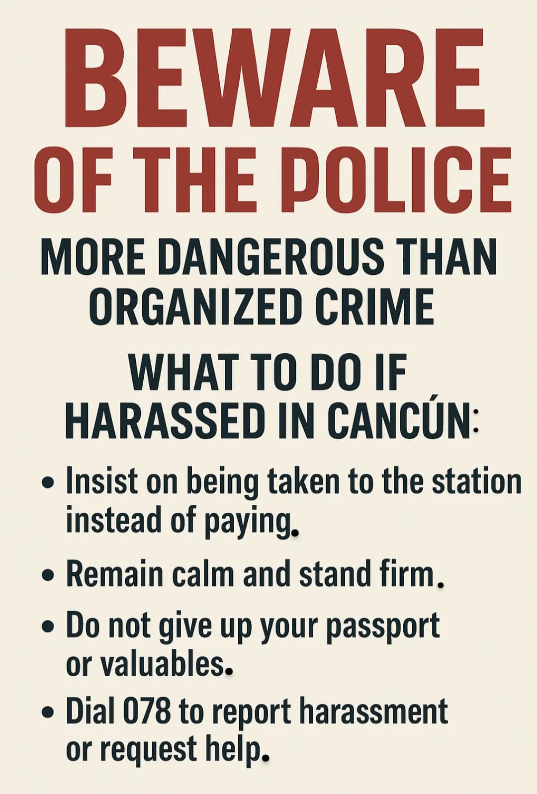 This disgusting conduct is damaging to: -the reputation of the police. -the reputation of the city. -the reputation of Mexico as a whole. -the businesses that thrive on after-hours foot traffic. -the innocent tourists who are often forced to fork over 1000-5000 pesos.